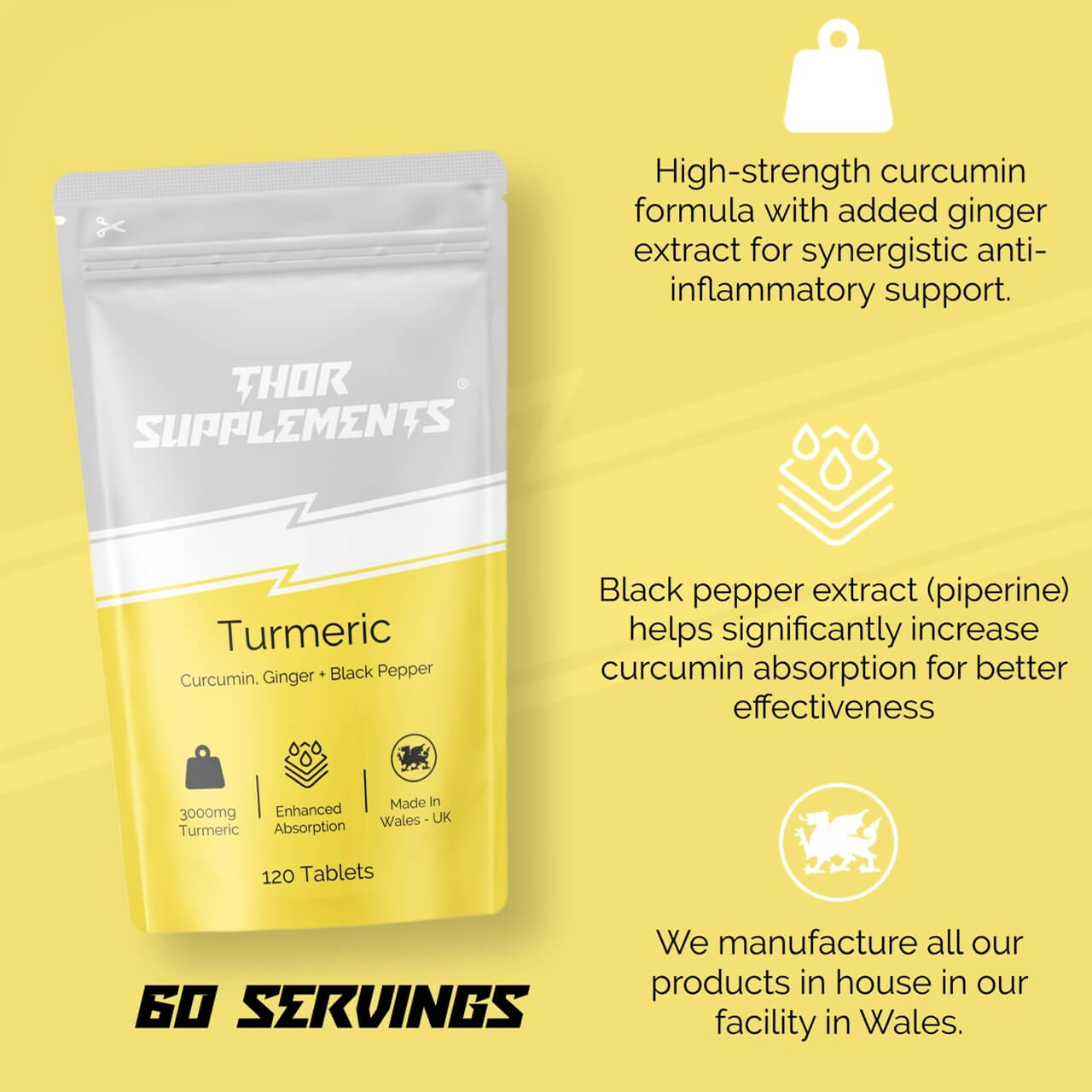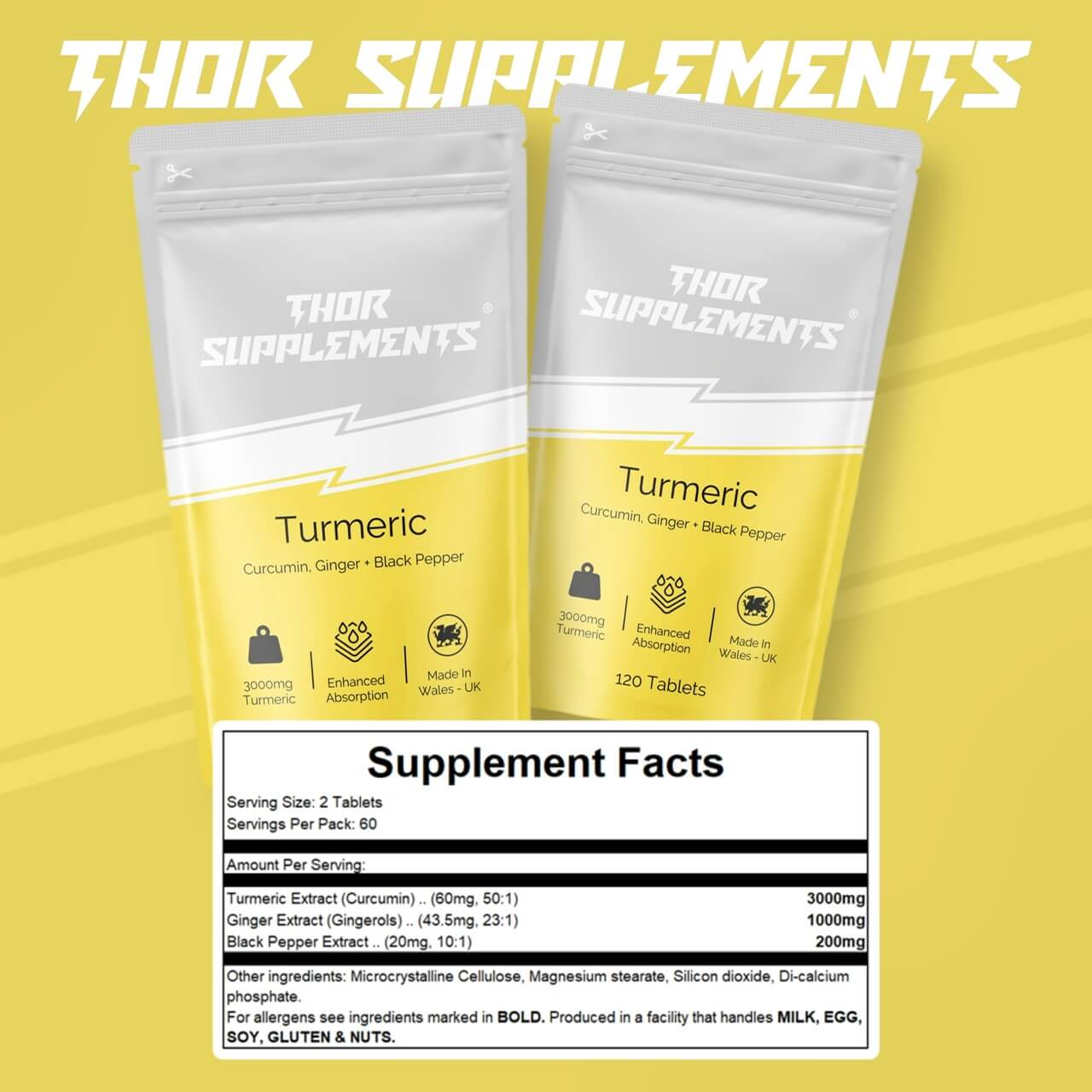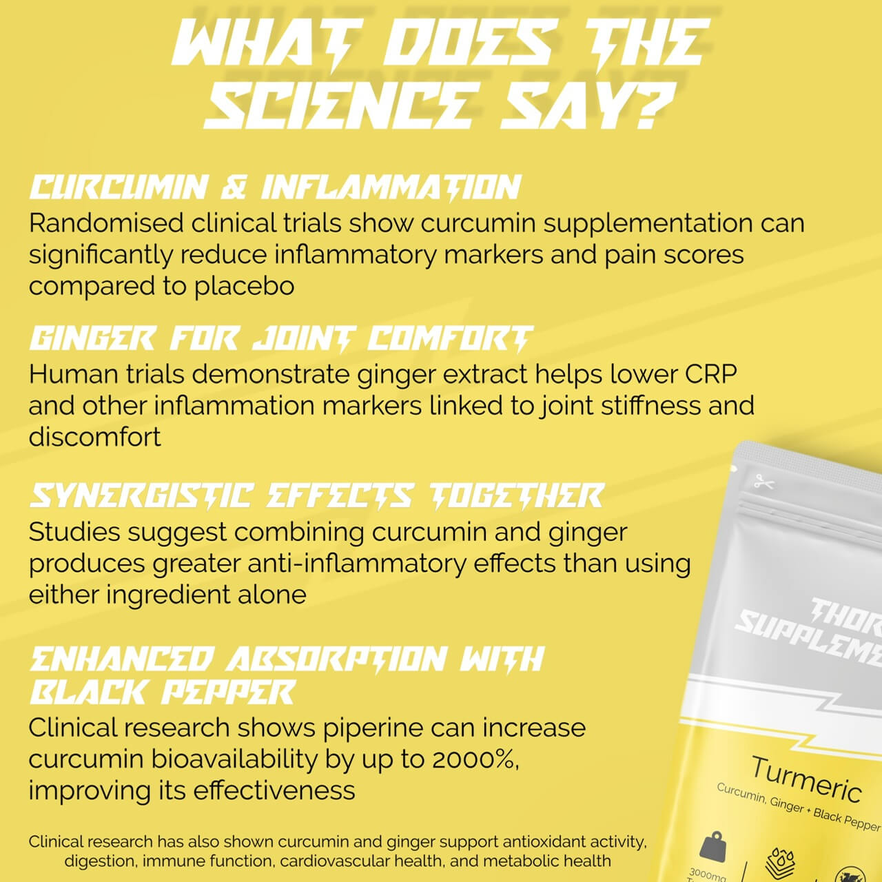 • Turmeric Extract: 3000mg (standardized to 95% curcuminoids)